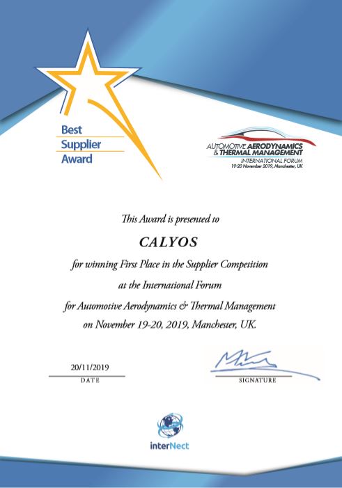 The winner for the Best Automotive Aerodynamiucs Supplier Award 2018 was Calyos.